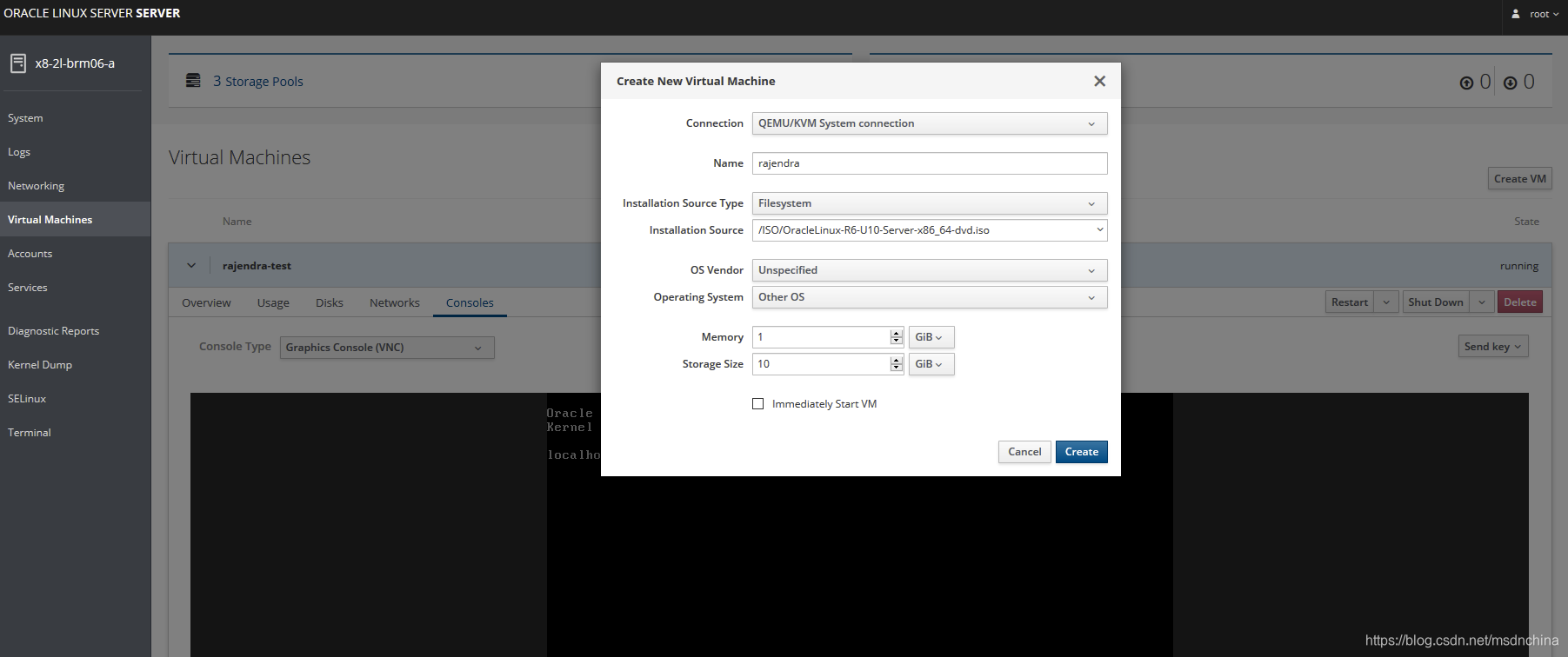 Managing Virtual Machines from the oracle Linux 8 Web Console-Cockpit