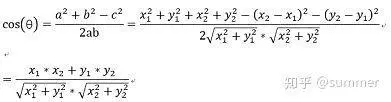 两个点的距离可以通过a和b的夹角的余弦值来表示,值越大,距离越小。如下: