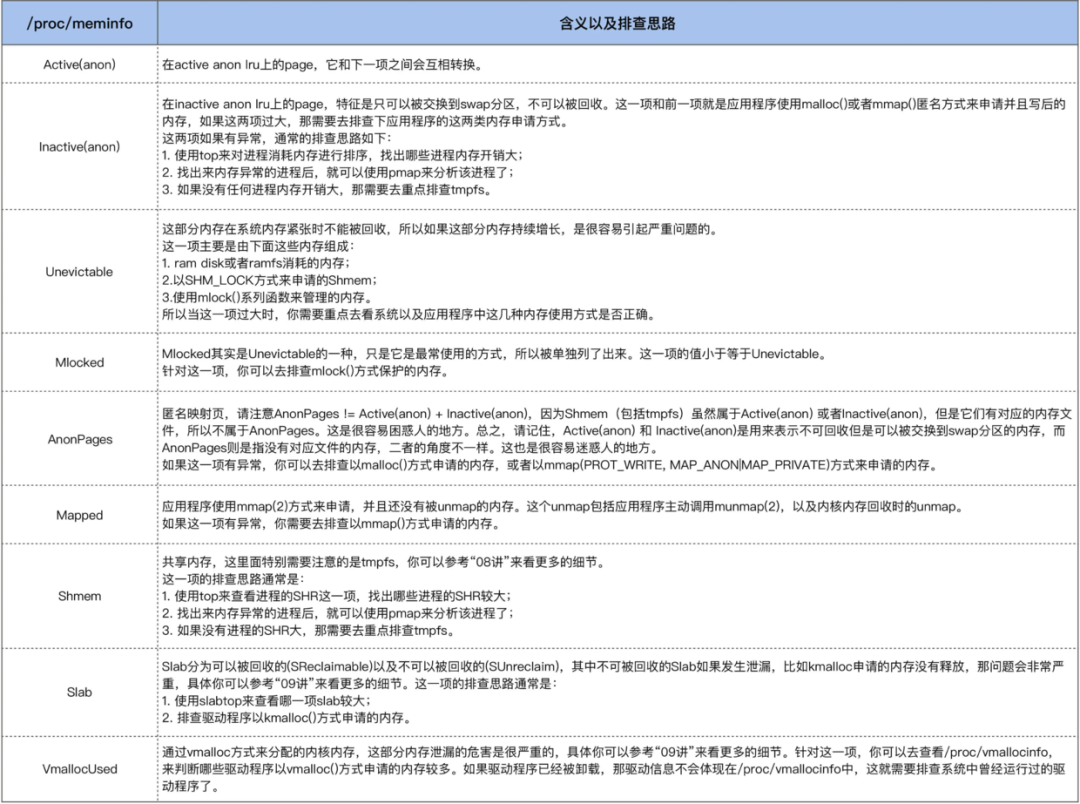 这里面说明的挺详细的了,如果遇到内存问题,观察这个肯定会发现猫腻的。