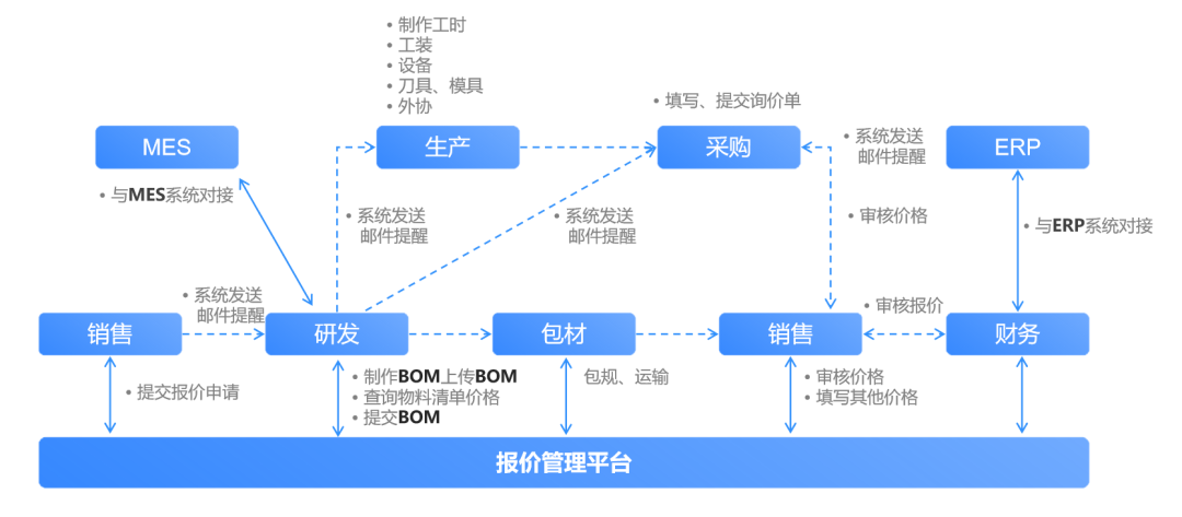 梅施云报价管理平台通过规范询报价流程和作业标准,严格要求各部门人员依据系统数据要求规范填写内容,流程化作业协同方式,自校验数据规则,一键生产客户询价单。