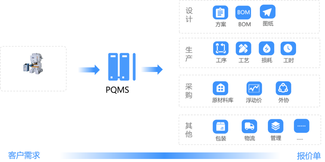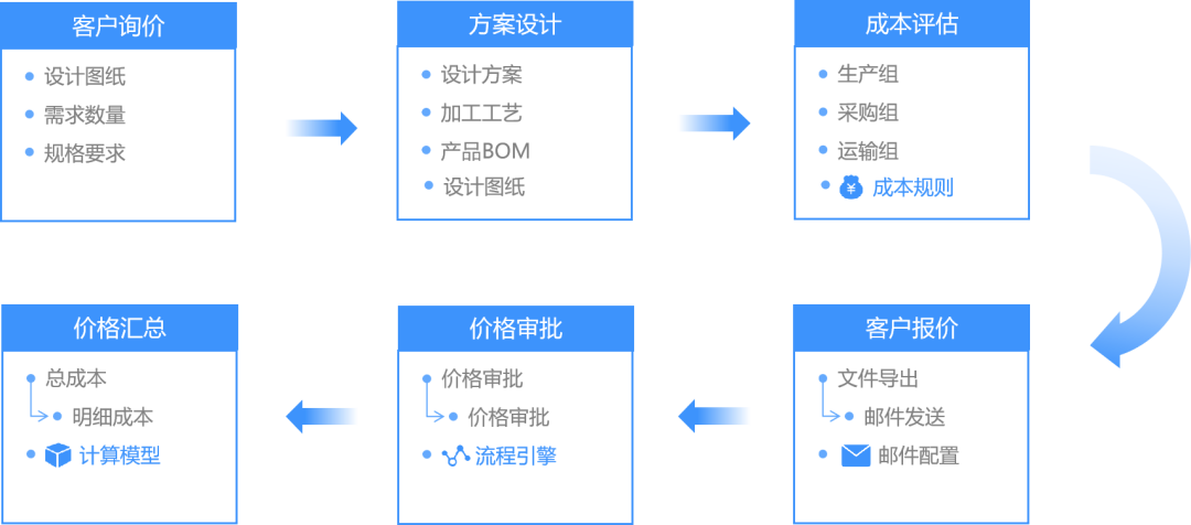 梅施生产报价管理系统三大核心引擎帮助客户实现功能个性化,操作简易化,流程自动化的报价需求。