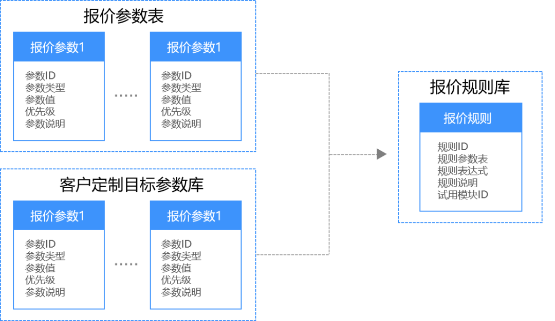 不同的报价规则对应着统一的计算公式模型,根据参数的改变实现不同的评估结果