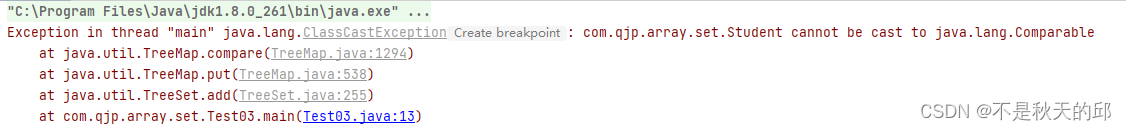 如果不指定比较器就会出现如下错误