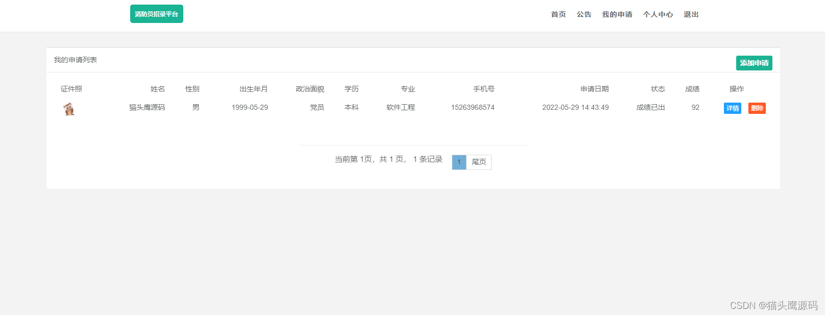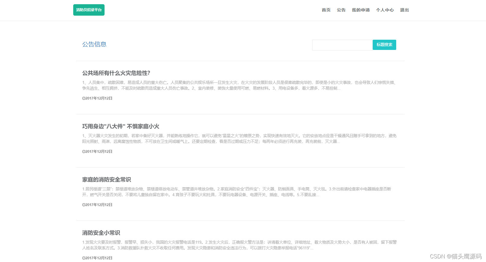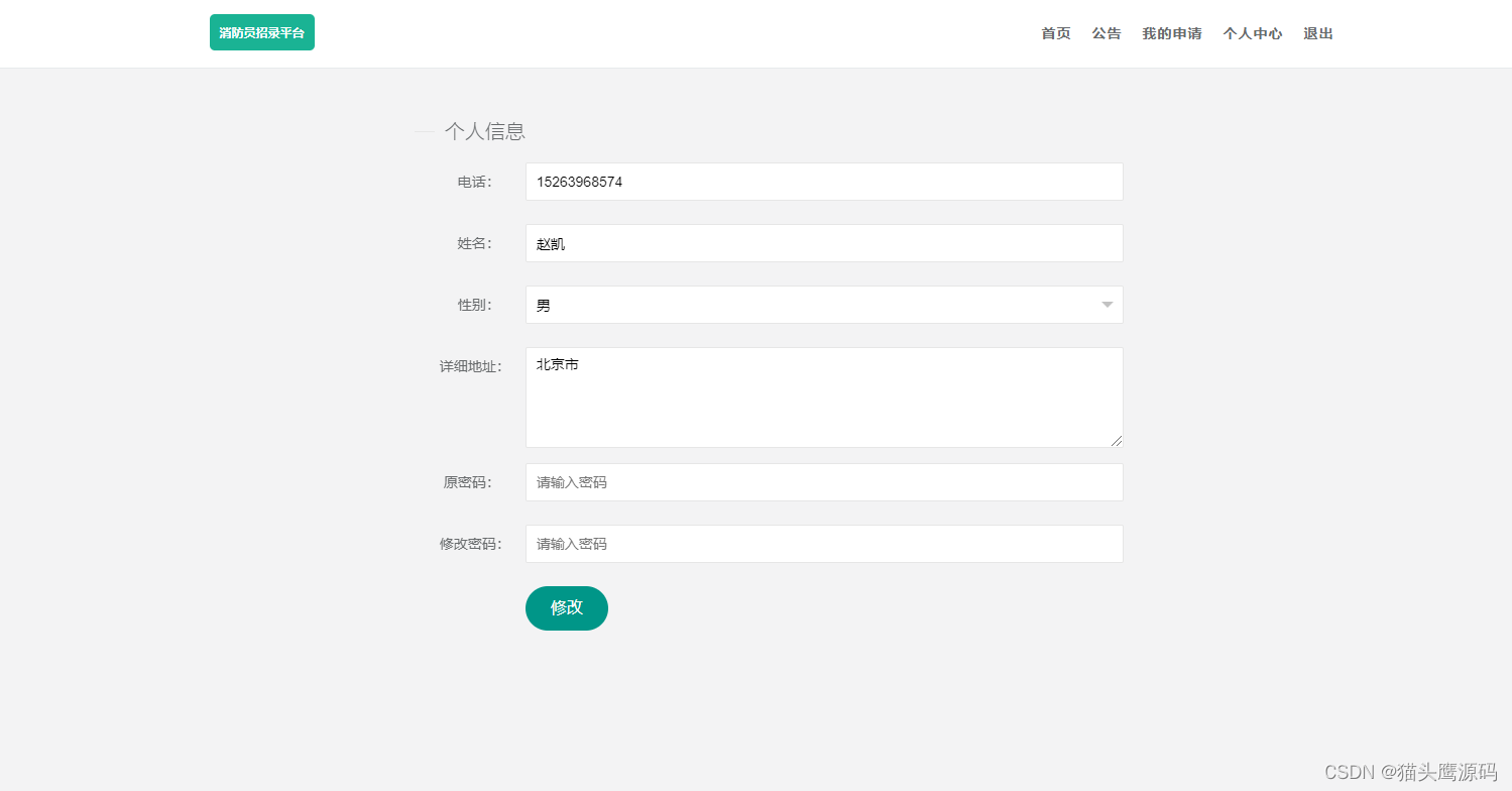 该系统为原创项目,基于springboot技术,数据层为MyBatis,mysql数据库,页面采用html,具有完整的业务逻辑,适合选题:消防员、消防、招录、人员录取等。