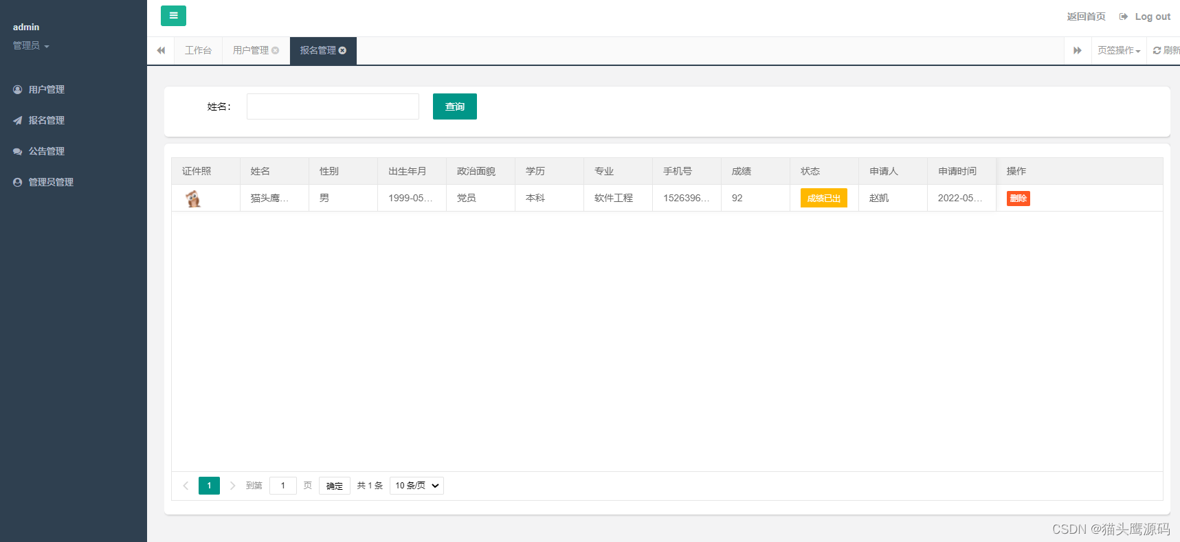 管理员对报名进行管理