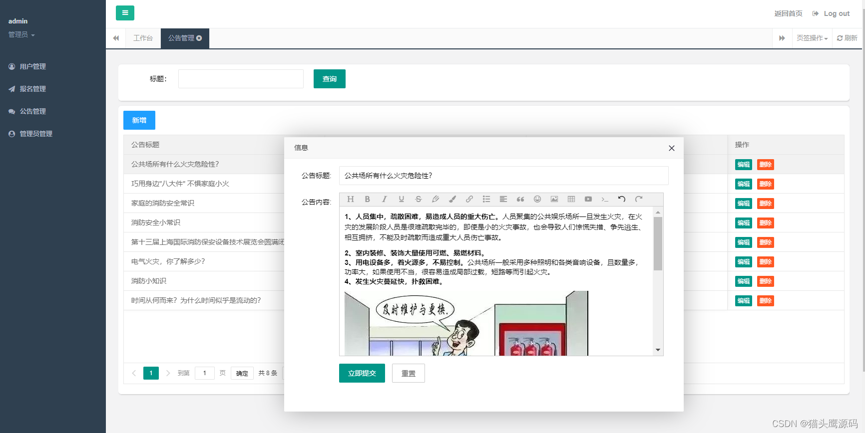 管理员对公告进行编辑