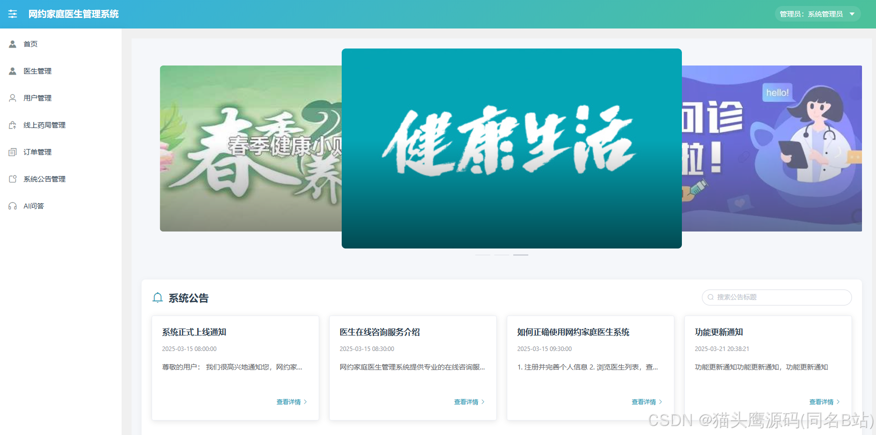 公告信息管理:发布系统公告,如系统更新通知,轮播图等,