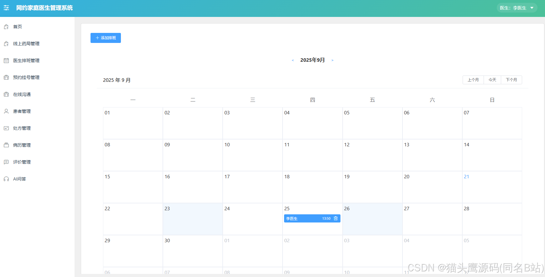 本系统为最新原创项目,采用前后端分离,项目代码工整,结构清晰,适合选题:网约、家庭医生、医生、医生管理、前后端分离类其他医生话题等。系统采用springboot+vue整合开发,前端主要使用了vue、项目后端主要使用了springboot,数据层采用mybatis。