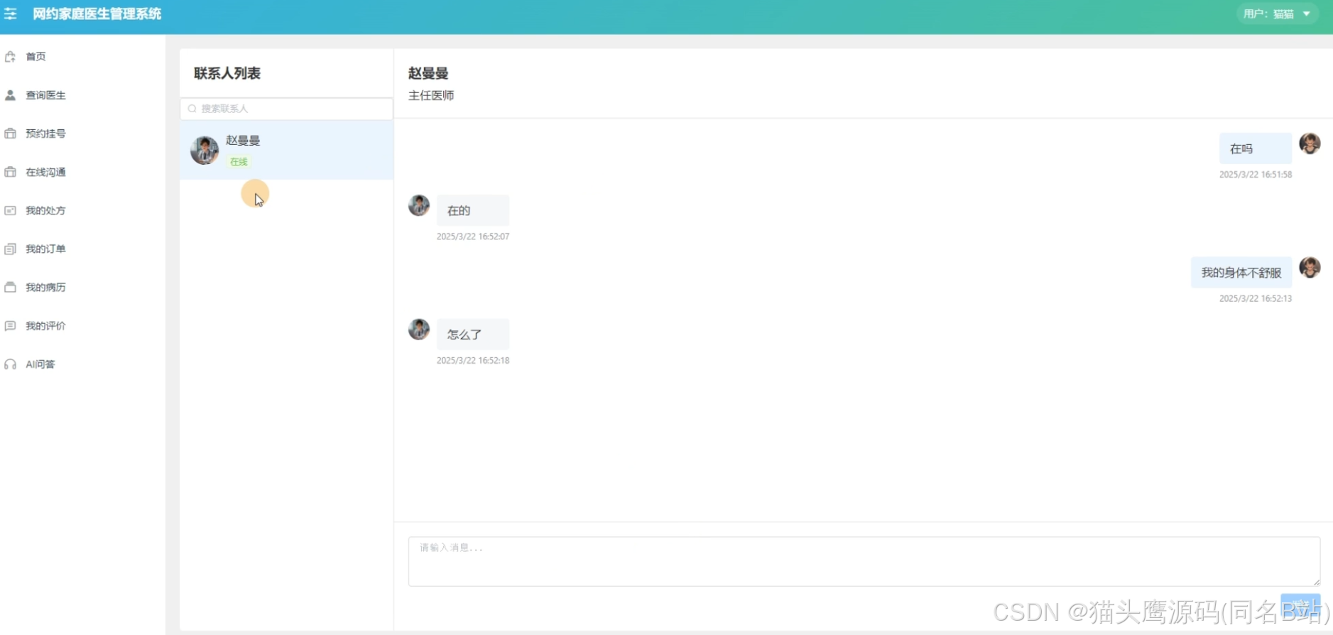 患者管理:医生可以查看自己的患者列表,包括患者的基本信息、预约记录和历史聊天记录。