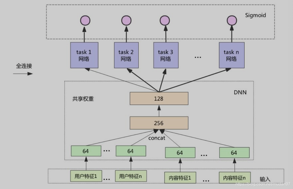 从性能方面的考虑,我们将底层权重设置成共享的,最后一层会根据不同的目标进行权重的训练。