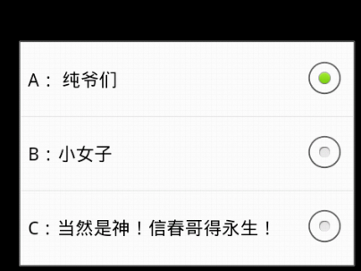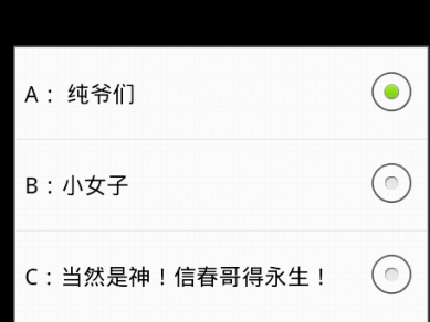 开发中时常要用到Spinner控件,例如我想要做一个选择题: