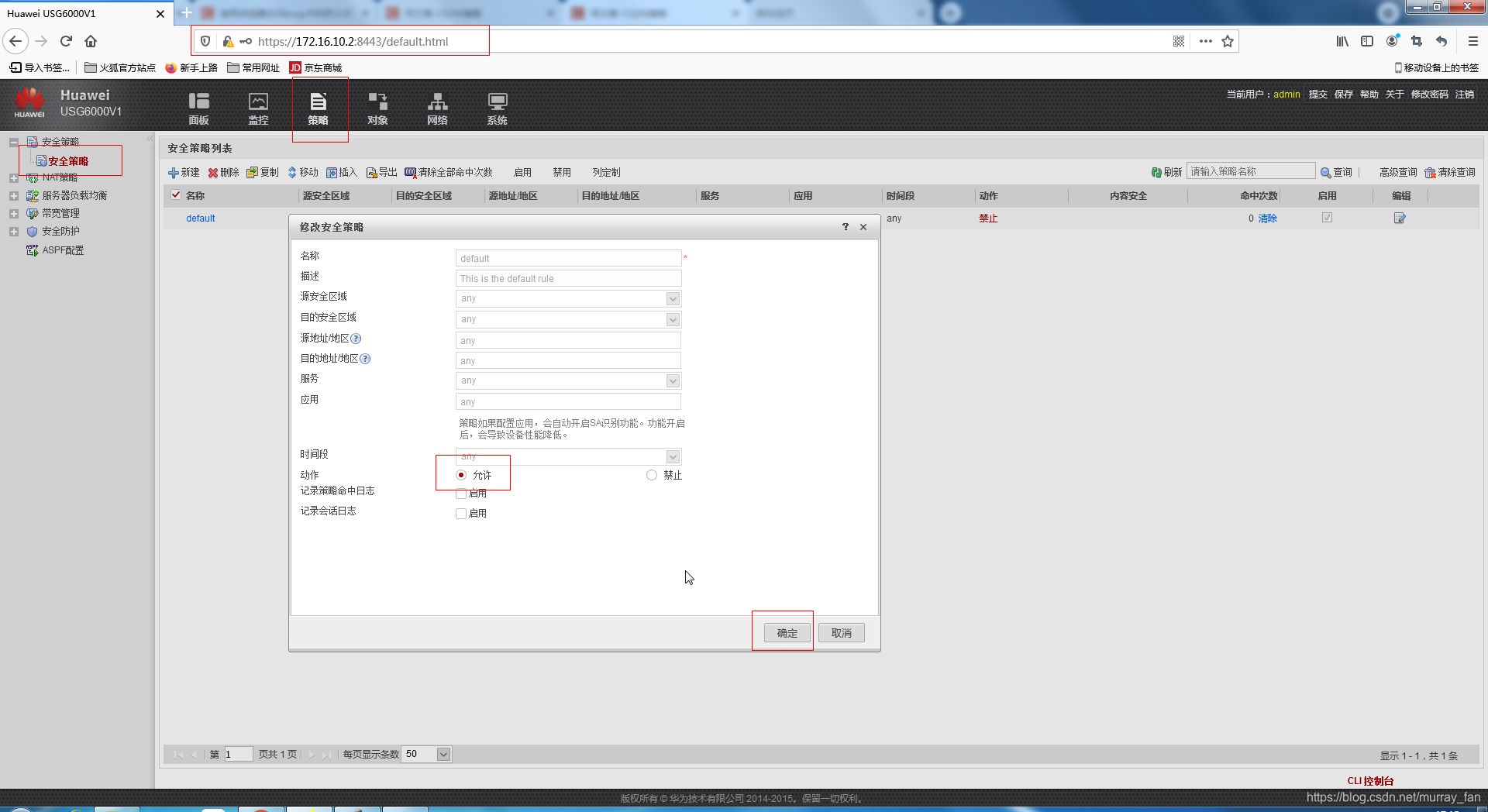 [USG6000V1-GigabitEthernet0/0/0]ip address 172.16.10.2 24