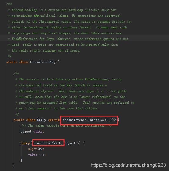ThreadLocal的原理是操作Thread内部的一个ThreadLocalMap,这个Map的Entry继承了WeakReference,设值完成后map中是(WeakReference,value)这样的数据结构。java中的弱引用在内存不足的时候会被回收掉,回收之后变成(null,value)的形式,key被收回掉了。
