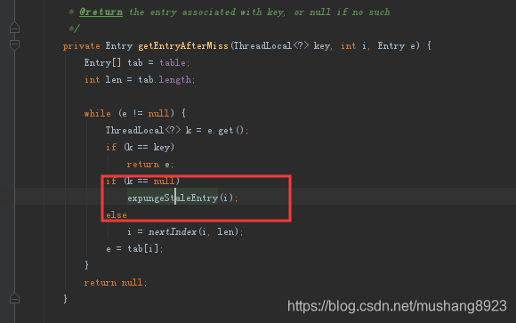 如果发现key为Null,调用expungeStableEntry,意思是擦除,删除的意思,见名知意