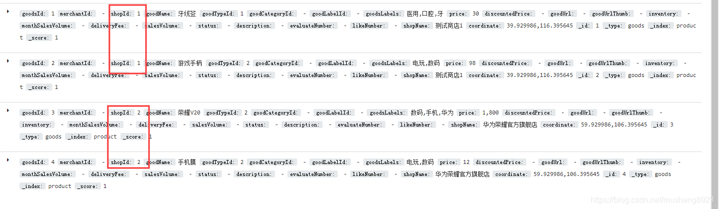 现在要搜索关键字为数码,且goodTypeId为2的所有商品,按店铺显示