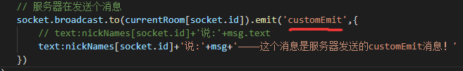 customEmit是前后台约定的消息,自定义的。后台定义了消息的名字,前台就可以使用这个名字来接受相应的消息了。