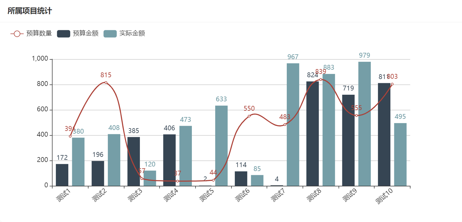 在预算统计中可以看到所属项目统计,所属项目统计如图所示: