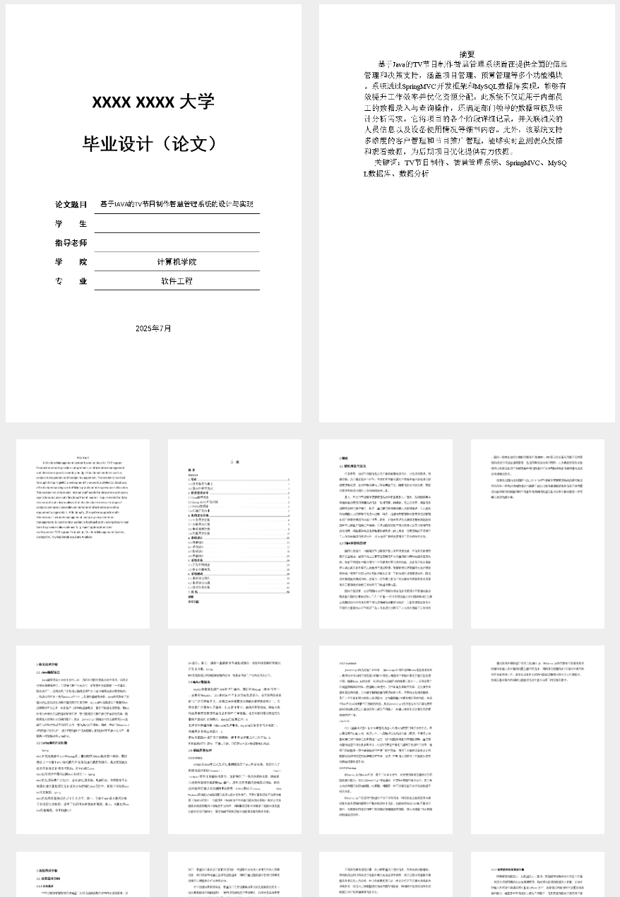 行业背景:电视节目制作领域正经历数字化转型,传统手工管理模式效率低下且难以追踪信息。现代管理系统能够实现流程自动化和高效的数据管理,提升工作效率与决策质量。 意义:开发TV节目制作智慧管理系统旨在构建一套全面的信息管理体系,覆盖项目、预算、员工等多个关键环节。通过该系统可以提高数据录入精度,确保信息一致性;改进工作流协调机制,增强团队协作效率;提供详尽的分析报表支持管理层做出更精准的战略规划和资源分配决策,从而显著降低运营成本并提升节目制作质量与市场竞争力。