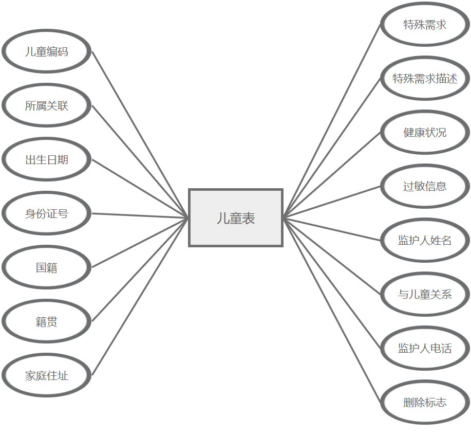 儿童管理主要属性包括:儿童编码、所属关联system_user、出生日期、身份证号、国籍、籍贯、家庭住址、特殊需求、特殊需求描述、健康状况、过敏信息、监护人姓名、与儿童关系、监护人电话、删除标志。
