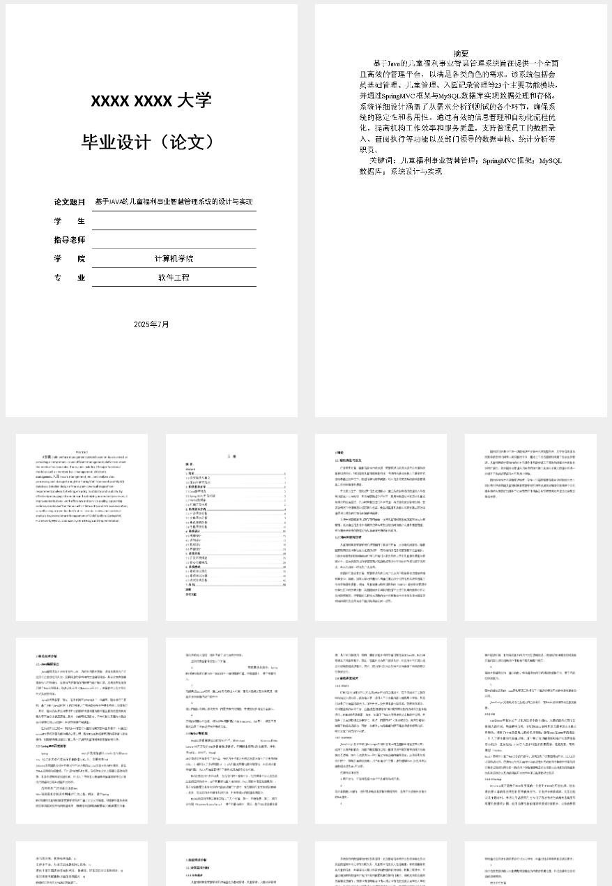儿童福利事业智慧管理系统旨在提高儿童福利机构的管理效率与服务质量。当前,我国儿童福利体系面临数据记录繁琐、信息更新滞后等问题,影响了资源分配和决策制定。此系统的开发将基于Java语言及SpringMVC框架构建,使用MySQL作为数据库支持,并包含多种功能模块如会员基础管理、儿童入园记录、课程安排等,以满足普通员工与部门领导的不同需求。该系统不仅能够实现数据的高效录入与查询,还能进行统计分析和安全管理,从而提高工作效率并确保服务质量,最终促进我国儿童福利事业的发展壮大。
