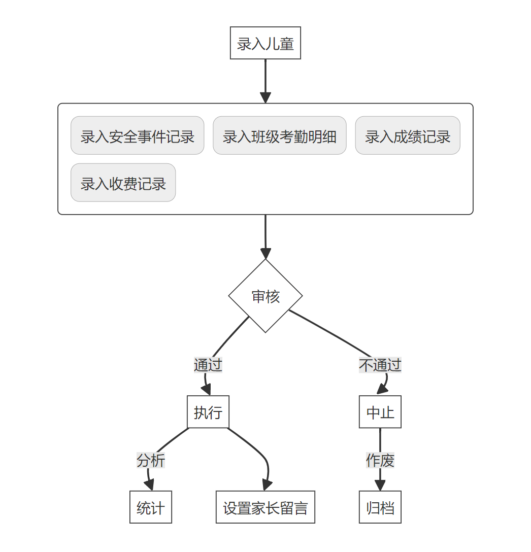 儿童入园记录管理功能包括儿童入园记录列表、儿童入园记录统计。