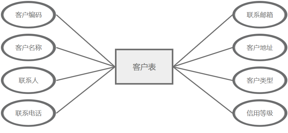 客户管理主要属性包括:客户编码、客户名称、联系人、联系电话、联系邮箱、客户地址、客户类型、信用等级。