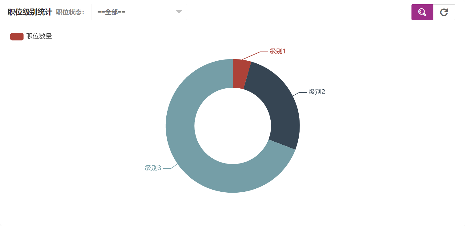 在职位统计中可以看到职位级别统计、职位状态统计,职位级别统计如图所示: