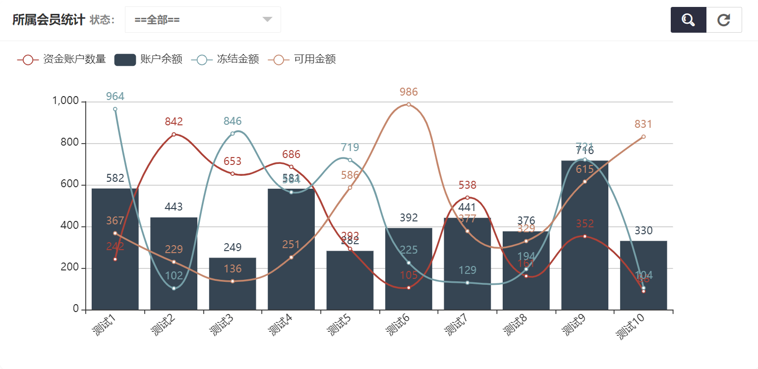 在资金账户统计中可以看到所属会员统计、状态统计,所属会员统计如图所示: