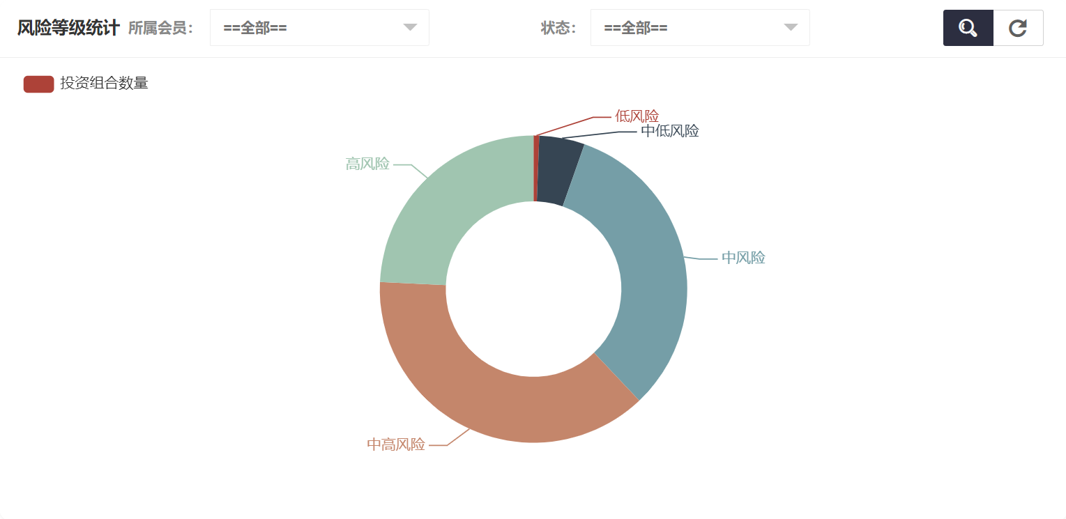在投资组合统计中可以看到所属会员统计、风险等级统计、状态统计,风险等级统计如图所示: