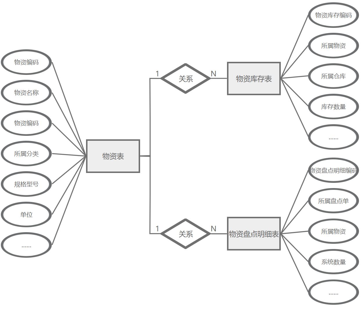 物资管理主要属性包括:物资编码、物资名称、物资编码、所属分类、规格型号、单位、品牌、生产厂家、保质期(天)、安全库存、物资描述、状态。