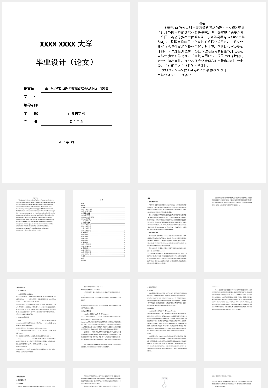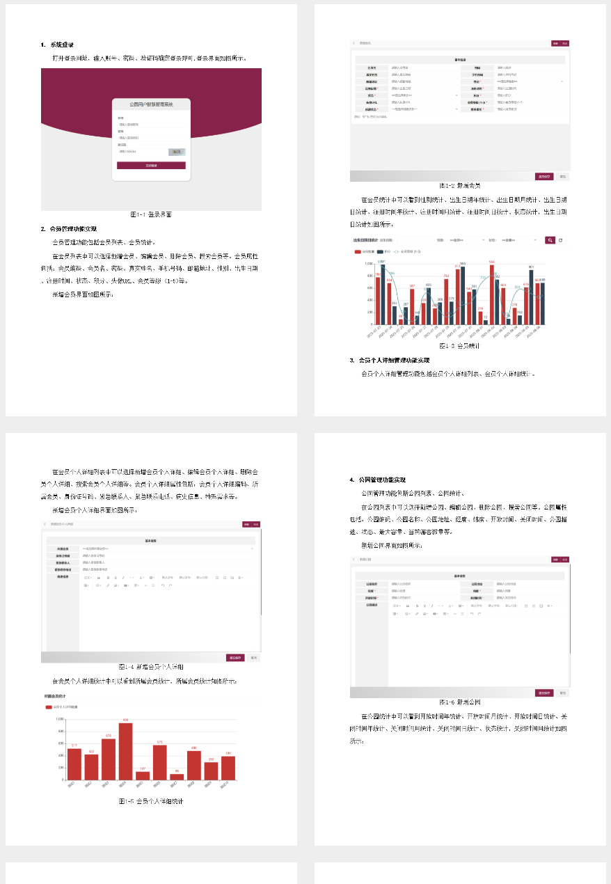 公园用户智慧管理系统旨在提升传统管理方式的效率与智能化水平,它不仅包含了会员、活动及订单等核心功能模块,还特别加入了在线客服和消息推送系统,为管理部门提供了全面的数据支持。相较于常见的选题,本项目具有明显的创新性和实用性:首先,在线客服会话管理和消息推送系统的加入使得沟通更加便捷高效;其次,通过ECharts.js实现数据可视化,使信息展示更具直观性与易读性。此外,所有功能模块均采用SpringMVC开发框架和MySQL数据库进行构建,确保系统稳定可靠的同时降低了开发难度,便于零基础开发者快速上手学习实践。本项目不仅能够满足公园管理的实际需求,还为其他类型的管理系统提供了宝贵的经验借鉴和技术支持。