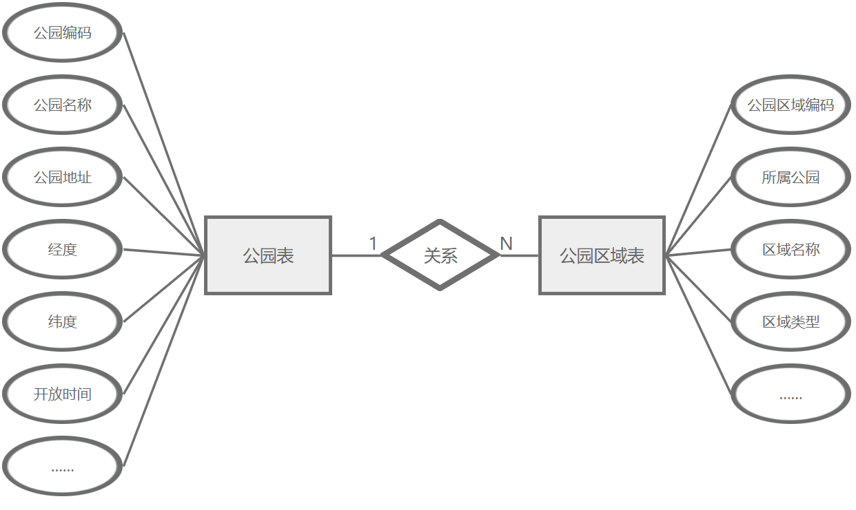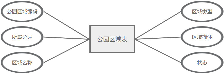 公园区域管理主要属性包括:公园区域编码、所属公园、区域名称、区域类型、区域描述、状态。