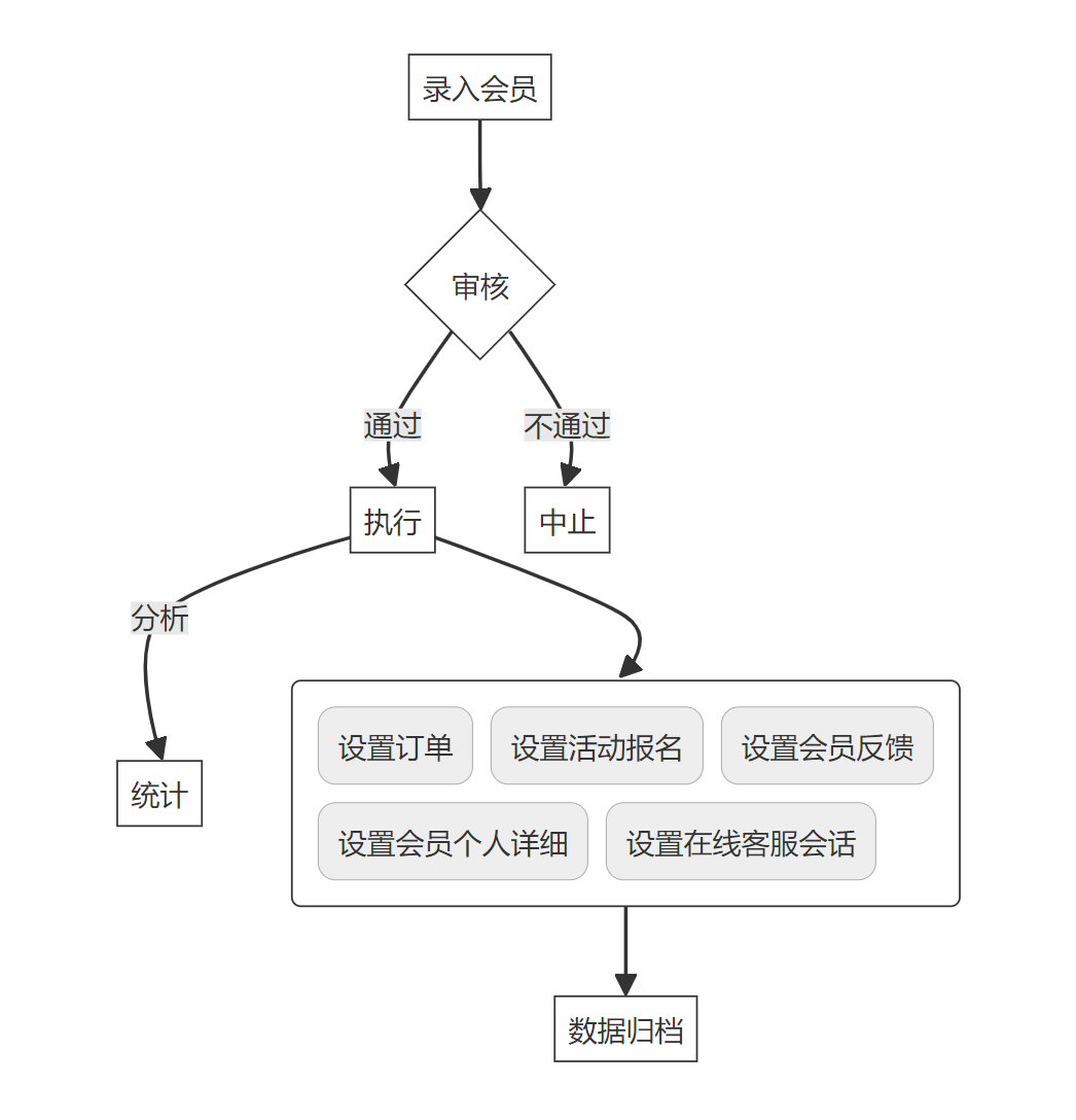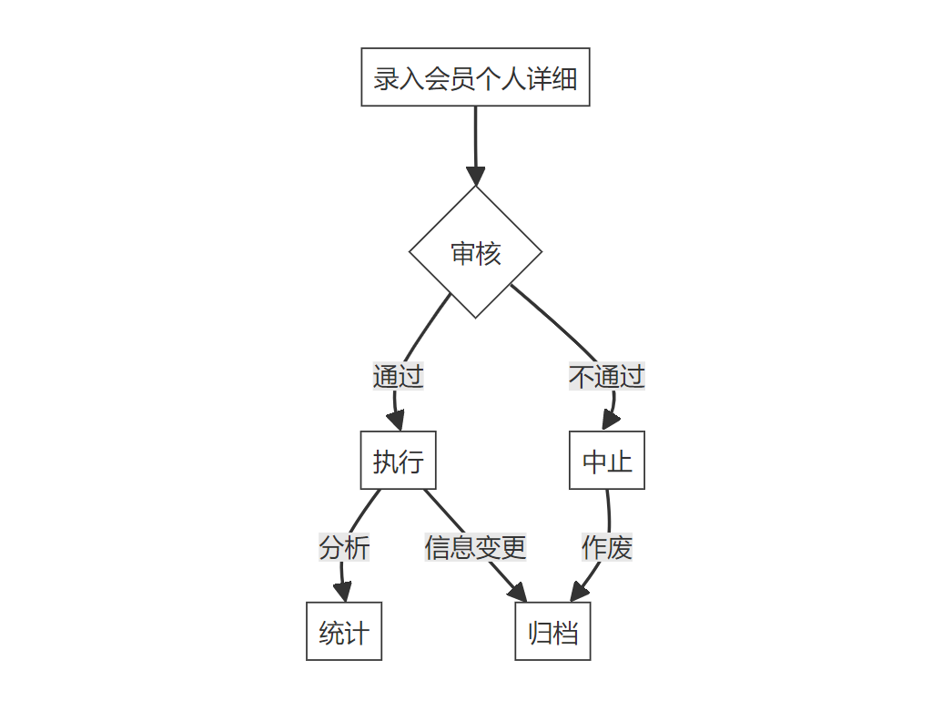 会员管理:录入新会员信息,包括编码、姓名等;查询特定或所有成员详细资料;变更个人信息如地址及状态;审核普通员工提交的数据以确保准确性;统计分析会员分布和行为模式,如级别构成与活跃度。