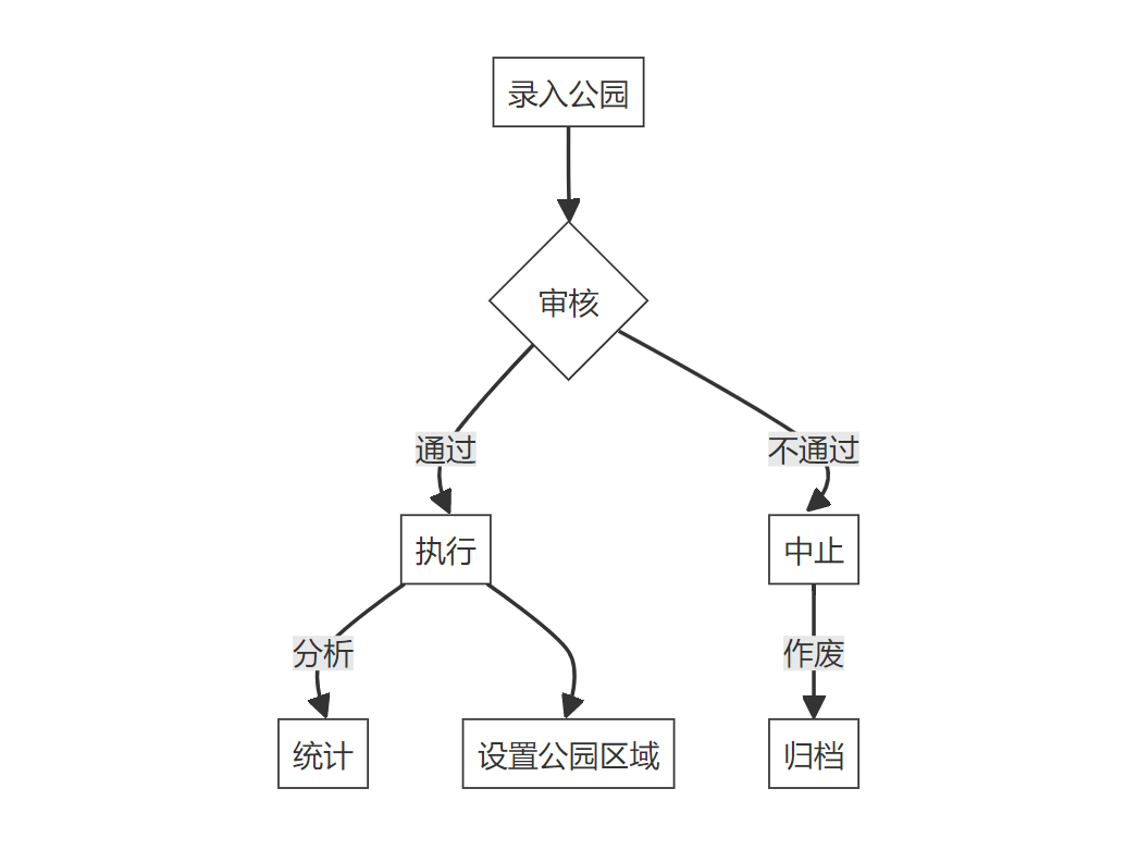 公园管理主要字段属性包括:公园编码、公园名称、地址、经度纬度、开放时间、关闭时间描述状态最大容量当前游客数量。通过录入系统可添加新公园信息,审核员需对新增记录进行验证;查询功能支持根据关键词或具体条件获取特定数据;变更操作允许修改已存在记录的详细内容如描述更新等;审核流程确保数据准确性和合规性;统计分析模块则提供多种报表以帮助管理者了解游客流量分布、热门活动区域及其他运营情况,提升管理效率。