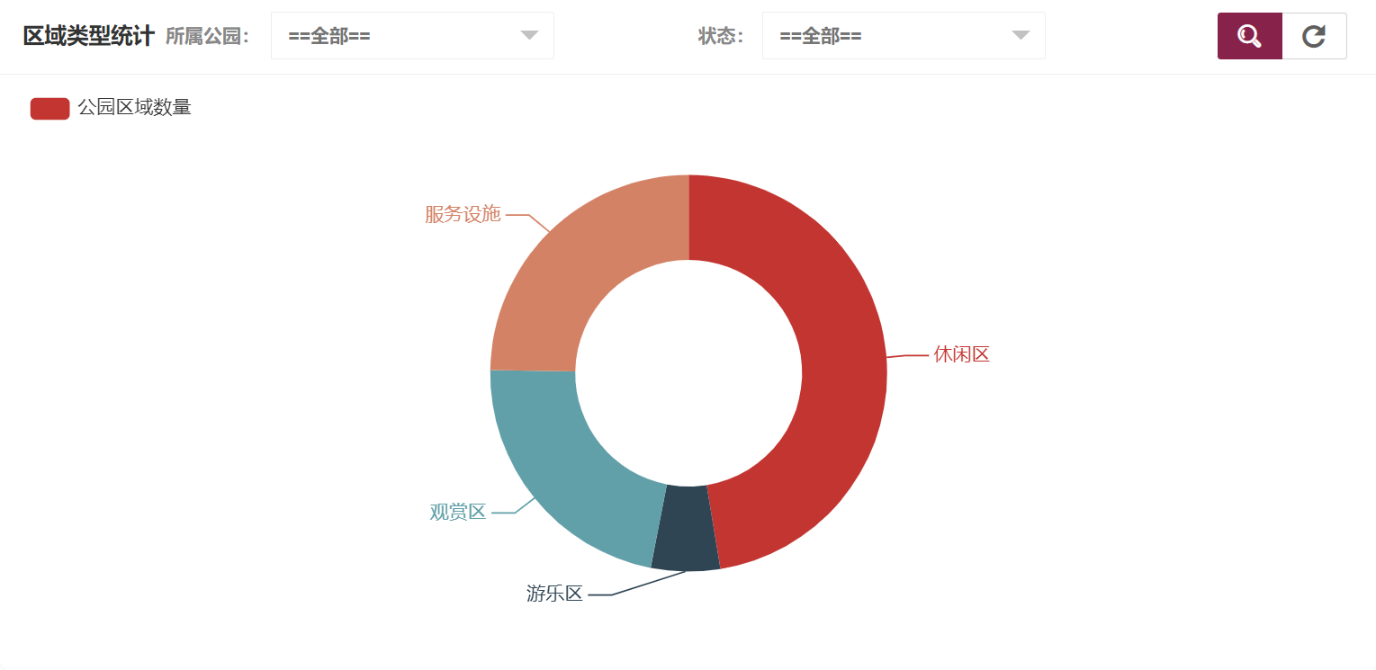 在公园区域统计中可以看到所属公园统计、区域类型统计、状态统计,区域类型统计如图所示: