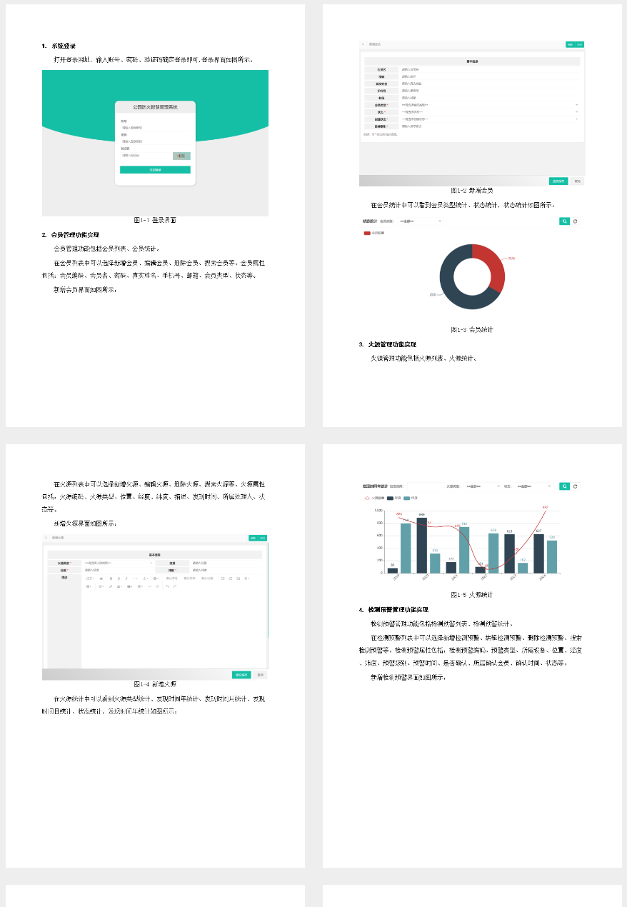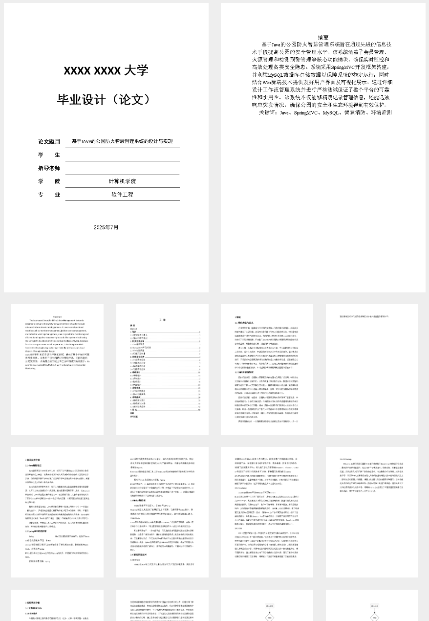 开发公园防火智慧管理系统基于当前城市化进程加快,大型公共开放空间需求增加的背景。随着森林火灾事故频发及防火要求提升,传统的人工管理模式已无法满足现代管理效率和精准度的需求。系统通过集成会员、火源、检测预警等多功能模块,实现数据实时监控与智能分析处理,提高应急响应速度和预防效果;借助SpringMVC框架和MySQL数据库确保高效的数据交互与存储能力;利用工作流管理系统规范业务流程,提升工作效率;结合环境监测管理优化资源分配及维护策略。系统不仅有助于防火安全的全面提升,还能增强公园管理水平和服务质量,保障游客人身财产安全,促进生态环境保护。