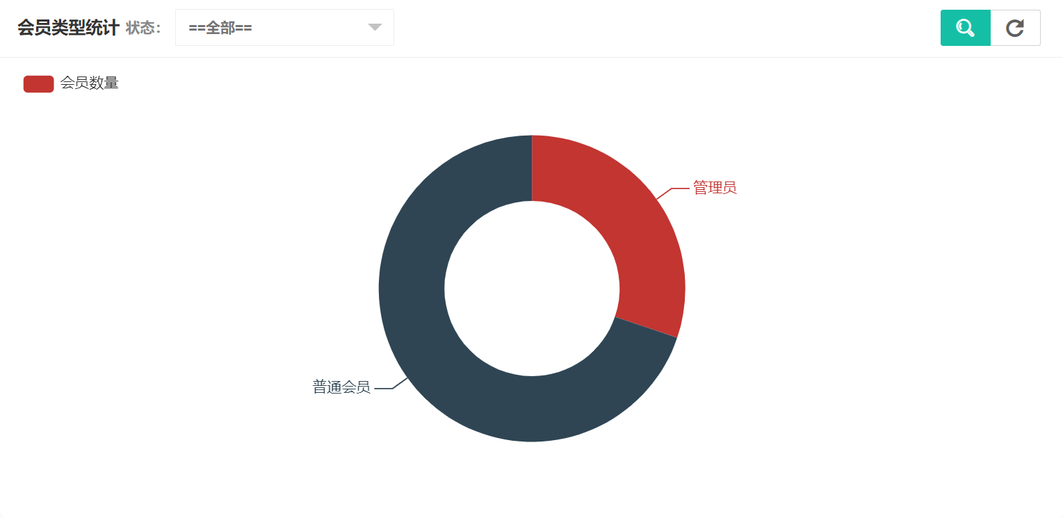 在会员统计中可以看到会员类型统计、状态统计,会员类型统计如图所示:
