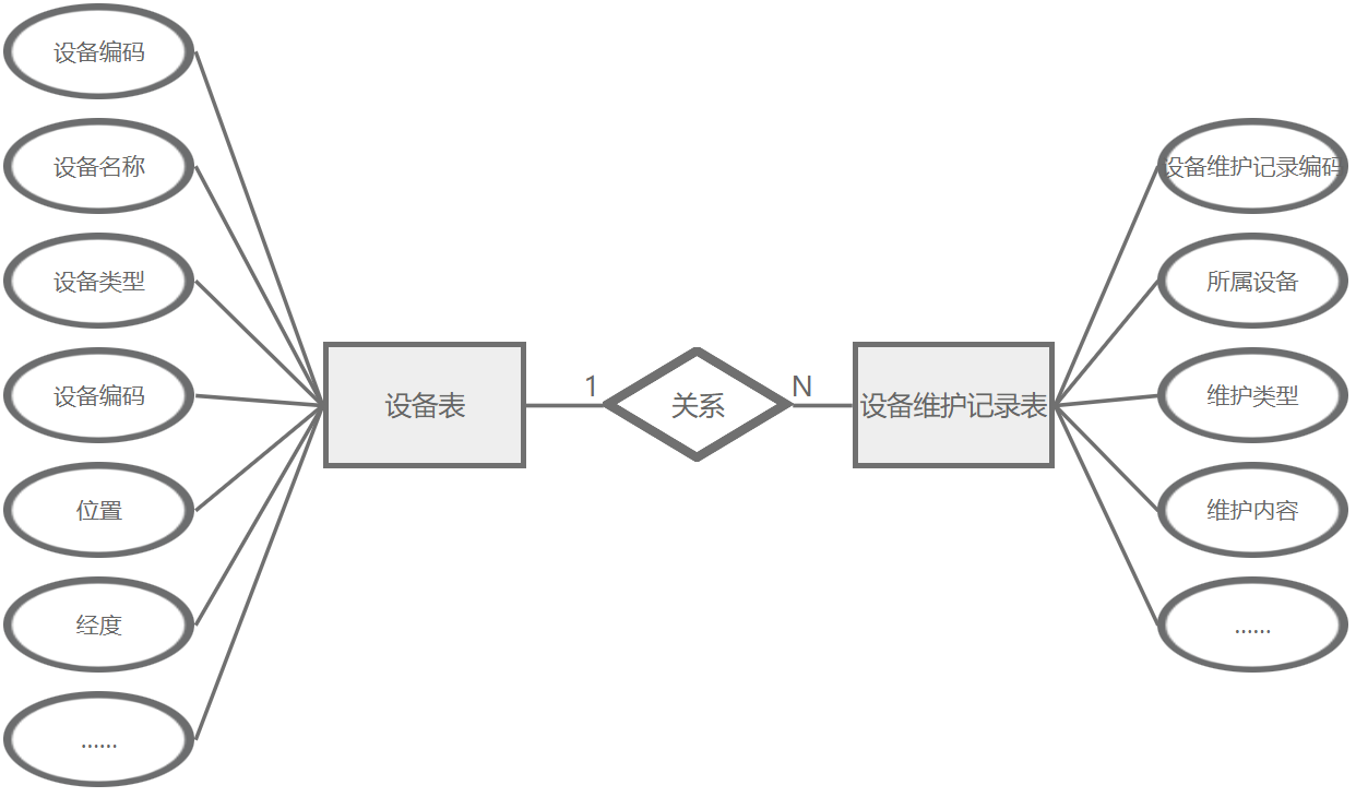 设备管理主要属性包括:设备编码、设备名称、设备类型、设备编码、位置、经度、纬度、安装时间、维护周期(天)、上次维护时间、下次维护时间、状态。