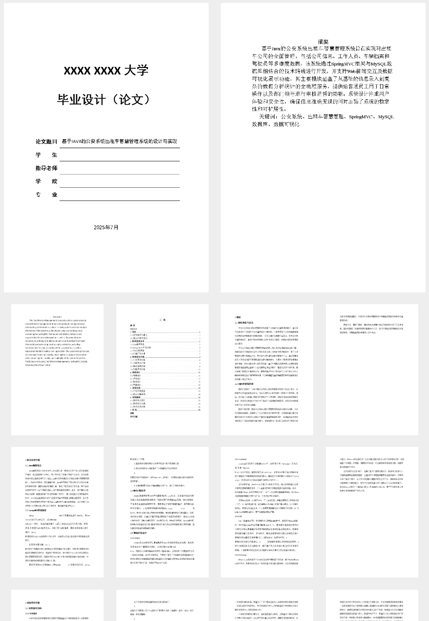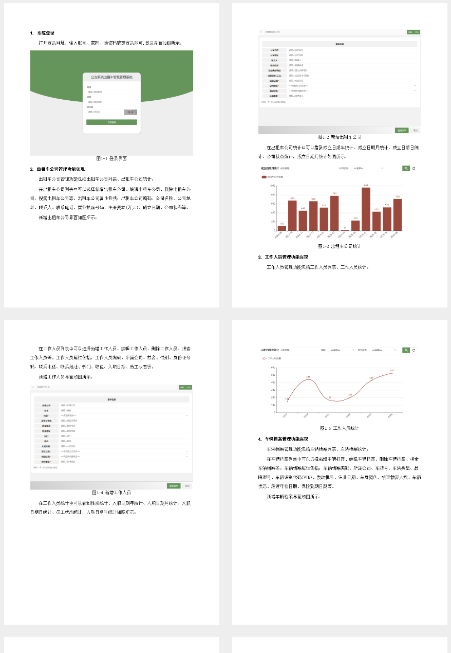 为什么要选择这个题目:公安系统出租车智慧管理系统是城市管理的重要组成部分,旨在提高交通管理效率和透明度。开发背景分析显示当前系统的功能模块较为单一且信息化程度不足,通过引入先进的技术手段可以大幅提升管理水平和服务质量。 需求分析中发现现有管理模式存在数据录入繁琐、信息更新滞后等问题,亟需一套高效的信息化管理系统进行改造升级。系统设计方面将采用SpringMVC框架和MySQL数据库以实现高效的数据处理与存储,并结合JavaScript及ECharts.js提升用户体验;普通员工主要负责基础资料的录入与维护,而部门领导则侧重于数据审核分析。 出租车公司管理模块可快速查询并更新相关信息如注册资本、成立日期等。工作人员管理模块支持添加新成员或调整其职务状态等功能操作。车辆档案管理系统用于记录和追踪每一辆车的基本信息及维修保养情况;驾驶员管理模块方便录入与查看司机资质证明材料,确保每名运营者符合标准要求。 车辆与驾驶员关系管理使两者之间的绑定更加清晰有效,并可直观地展示当前合作状况。出城登记管理涵盖详细行程安排以便后续跟进监督,而乘客名单则对每次出行的具体人员进行精准记录;监控人员管理系统有助于加强现场监管力度和应急响应速度。 通过上述功能模块的实现可以显著提高公安系统出租车智慧管理系统的整体效能及用户满意度,并为未来的持续优化提供坚实基础。