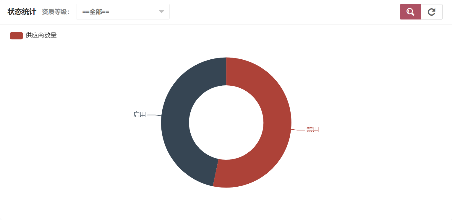 在供应商统计中可以看到资质等级统计、状态统计,状态统计如图所示: