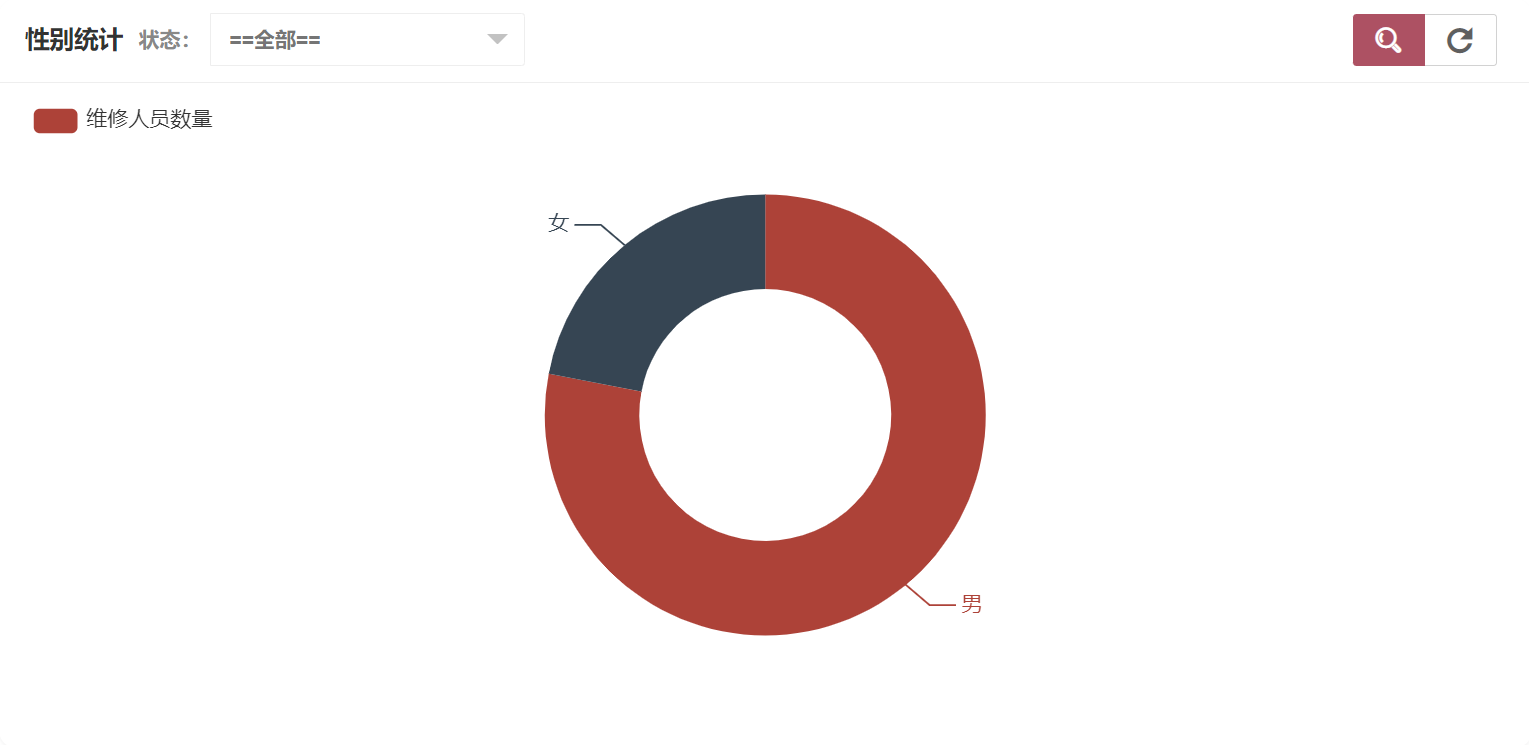 在维修人员统计中可以看到性别统计、状态统计,性别统计如图所示: