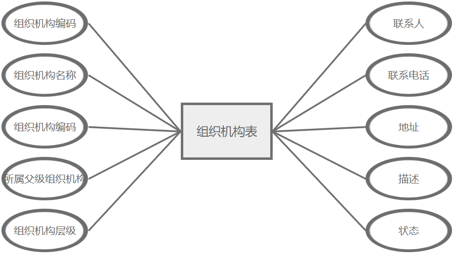 组织机构管理主要属性包括:组织机构编码、组织机构名称、组织机构编码、所属父级组织机构、组织机构层级、联系人、联系电话、地址、描述、状态。