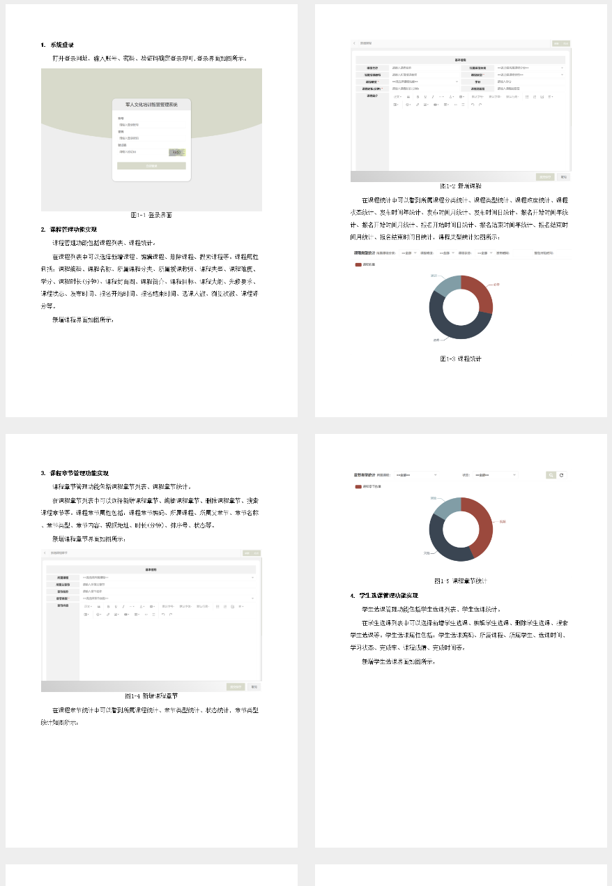 课程章节管理功能包括课程章节列表、课程章节统计。