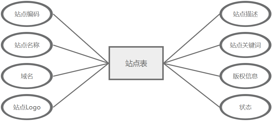 站点管理主要属性包括:站点编码、站点名称、域名、站点Logo、站点描述、站点关键词、版权信息、状态。