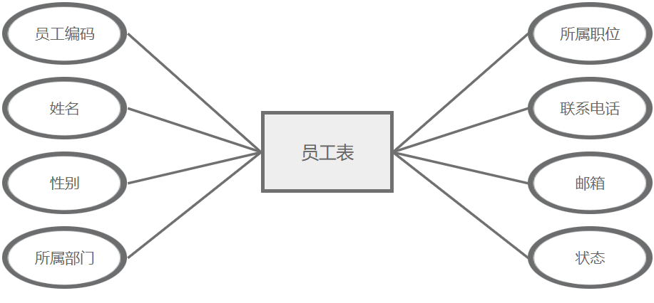 员工管理主要属性包括:员工编码、姓名、性别、所属部门、所属职位、联系电话、邮箱、状态。