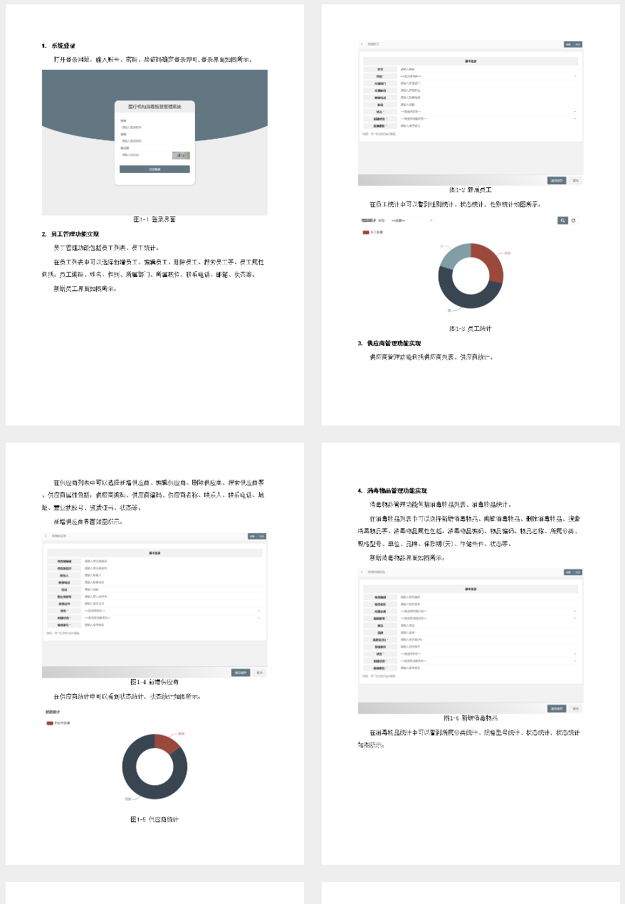 员工管理模块包括数据录入、查询、变更和审核,支持普通员工与部门领导角色。普通员工通过填写姓名、性别等基本信息进行信息录入;系统提供快速搜索功能帮助员工根据关键词查找所需记录,并可导出表格便于打印查看或存档。当有新岗位需求时,需提交申请修改数据库中的职位分类字段值以适应变化。审核流程中部门领导负责对新增及变更数据的真实性、准确性进行全面检查并签署意见;系统自动保存每次操作日志确保追溯性与透明度。统计分析方面通过ECharts.js绘制图表展示员工数量随时间的变化趋势及各部门人员构成比例,帮助管理层做出科学决策。