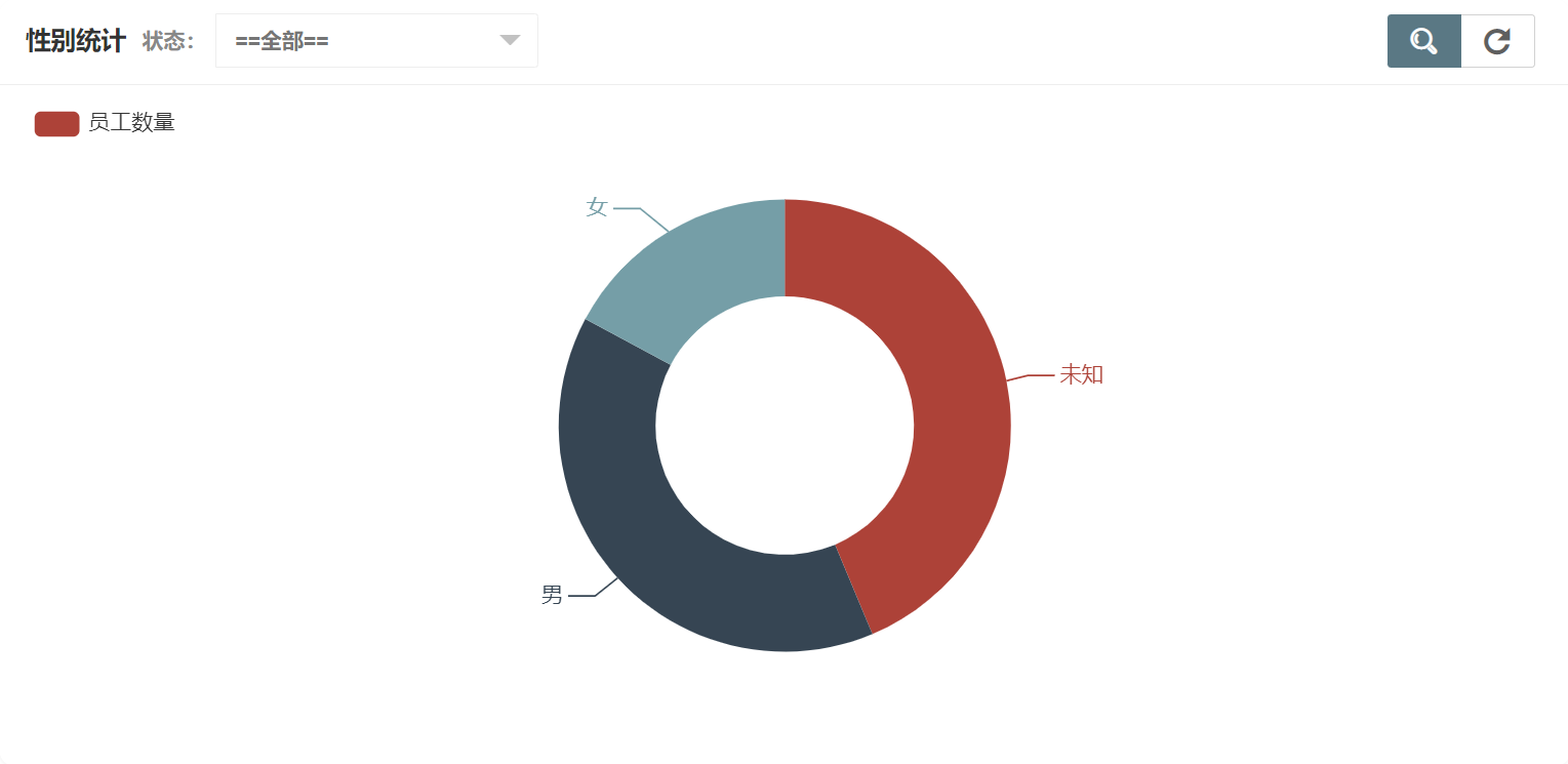 在员工统计中可以看到性别统计、状态统计,性别统计如图所示: