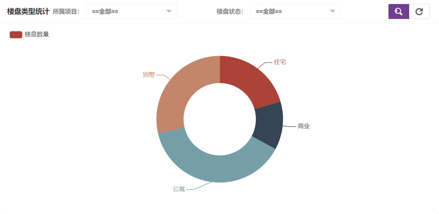 在楼盘统计中可以看到所属项目统计、楼盘类型统计、楼盘状态统计,楼盘类型统计如图所示: