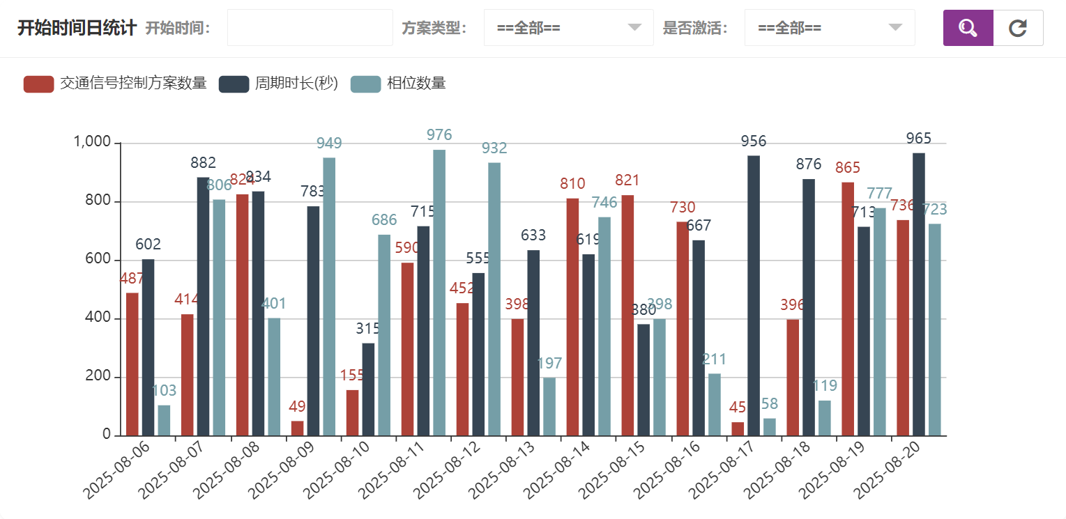 交通信号控制方案管理功能包括交通信号控制方案列表、交通信号控制方案统计。