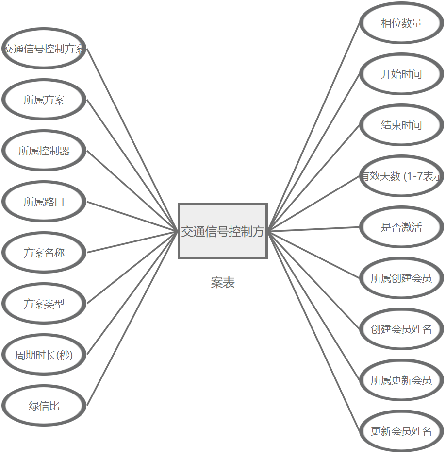 交通信号控制方案管理主要属性包括:交通信号控制方案编码、所属方案、所属控制器、所属路口、方案名称、方案类型、周期时长(秒)、绿信比、相位数量、开始时间、结束时间、有效天数 (1-7表示周一到周日)、是否激活、所属创建会员、创建会员姓名、所属更新会员、更新会员姓名。